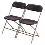 Praktischer Klappstuhl mit integrierten Reihenverbinder. Sitzfläche und Rückenlehne aus schwarzem Kunststoff.